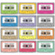 Jeu d'icônes de cassette audio vintage. Autocollants de contour. icônes vectorielles avec couleurs personnalisables. Deux champs de texte personnalisés.