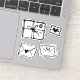 Cette feuille de quatre autocollants blancs avec des graphiques noirs a un paquet de lettres attachées ensemble, une enveloppe de lettre unique avec un baiser, swak, deux enveloppes empilées ensemble et un timbre de cœur d'amour. Parfait pour le scrapbooking, l'artisanat ou la décoration d'un cahier ou d'un ordinateur portable.