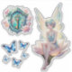 stickers Fairycore avec une fée, papillons bleus et une clé.