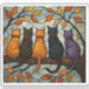 Sticker Five Cats on a Tree Branch Stained Glass Style