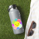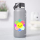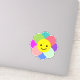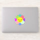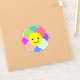 Fleur de dessin animé colorée avec un grand visage jaune heureux rond. Elle a huit pétales en vert, bleu, vert et rouge.