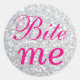 Ce sticker super mignon "mordre moi", fait un grand accessoire pour tout apéritif, dessert ou service alimentaire. L'arrière - plan de cet autocollant est une illustration photo et aucune parties scintillant réelle n'est utilisée.