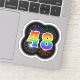 Ce design amusant et excitant autocollant comprend un feu d'artifice coloré inspiré motif, ainsi que le numéro "48" avec un arc-en-ciel multicolore comme spectre ou motif dégradé. Un autocollant comme celui-ci peut être utilisé pour célébrer le quarante-huitième anniversaire de quelqu’un, ou peut-être le quarante-huitième anniversaire de mariage d’un couple, ou un autre 48e événement. [~Z0000362]