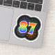 Ce design autocollant amusant et vibrant comprend un motif coloré et inspiré par des feux d'artifice festifs, ainsi que le numéro "87" avec un arc-en-ciel multicolore comme le spectre ou le motif dégradé. Un autocollant excitant comme celui-ci peut être amusant à utiliser pour célébrer le quatre-vingt-septième anniversaire de quelqu’un, ou peut-être le quatre-vingt-septième anniversaire de mariage d’un couple, ou un autre 87e événement. [~Z0000362]