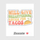 "Donnera des conseils d'allaitement pour les Tacos" Si vous êtes un conseiller en lactation ou un conseiller en lactation léger et humoristique, ce design super est le choix idéal. Ce n'est pas seulement pour vous, mais pour quiconque soutient l'allaitement avec un sourire. Consultant en lactation Conseiller en lactation Sticker pour allaitement amusant