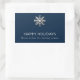 Mit diesem eleganten Snowflake Holiday Sticker können Sie Ihre Urlaubspakete, Geschenke und vieles mehr verbessern. Dieser rechteckige Aufkleber mit einer zauberhaften metallischen Schneeflocke auf einem marineblauen Hintergrund verströmt saisonalen Charme. Auf der Vorderseite steht die Meldung "Happy Holidays" und "Warm wünscht diese Feriensaison", die Ihren Paketen eine herzliche Touch hinzufügen. Mit seinem festlichen Design ist dieser Aufkleber perfekt geeignet, um Ihren Urlaubsumschlägen, Umschlägen und Dekorationen einen eleganten Akzent zu verleihen. Verteilen Sie die Freude der Saison mit jedem Aufkleber, den Sie bewerben, damit Ihre Geschenke wirklich stilvoll hervorstechen.