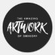 Ein cooler, personalisierter Aufkleber in Schwarz/Weiß, auf dem steht: "Das Phantastische Kunstwerk von Gregory." Ideal, um die Rückseite Ihres Kunstwerks zu ergänzen, das Ihre Kinder den Leuten verteilen.Wäre ideal für Kunsthandwerksmessen. Passen Sie den Aufkleber mit dem Namen Ihrer Wahl an. Es gibt eine Vielzahl von Farben. Entworfen für Sie von BlackBerry Boulevard.
