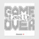 Game Over is depicted in bold, pixelated lettering, with the words “Level Up” creatively superimposed on it in an ornate script at its center and a sun shining behind it at the top. The graphic has a retro gaming aesthetic with a playful twist...