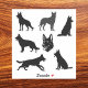 German Shepherd Dog Black Silhouettes Set Sticker. This sticker sheet features a set of black German Shepherd silhouettes in clean, bold designs. Perfect for decorating laptops, notebooks, water bottles, or any surface that needs a touch of dog-lover style.