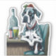 Capturer l'esprit chaleureux de la saison avec notre autocollant de chien Great Dane. Cet autocollant présente l’attitude du Grand Danois assis à une table avec un casquette de Noël.