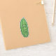 Ce sticker en vinyle a un gros cornichon vert drôle avec une tige et un visage avec une expression étonnée.