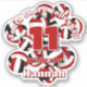 Cet autocollant de volleyball couleur équipe pour les filles ou les garçons présente l'image d'un groupe de volleyball rouge, noir et blanc de taille variée, sur lequel vous pouvez customiser le nom du joueur, le numéro de maillot, le nom de l'équipe et le nom de la mascotte - par katz_d_zynes