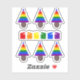 Cette feuille d'autocollant aux formes impressionnantes comprend un Arbre de Noël arc-en-ciel avec 2 petits symboles mâles bleus assis sur le dessus de l'arbre. Chaque couche de l'arbre est une couleur différente de l'arc-en-ciel. L'arbre se trouve dans un pot brun et est entouré de cadeaux. Chaque cadeau est aussi une couleur de l'arc-en-ciel, avec un ruban et un arc-en-ciel de couleur différente. Un joli design pour les couples gays ce Noël.