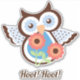 Hoot Hoot ! Sticker floral de chouette printanière adorable. Ce joli design présente un hibou bleu et marron avec des fleurs de corail. Des pois couvrent ses ailes. Le texte : "Hoot ! Hoot !" est sous l'image du hibou. Quelques éléments de Trina Clark.