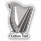 Icône de harpe noire et blanche avec décoration de noeud celtique. Texte personnalisé.