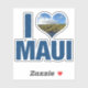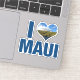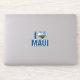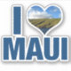 J'adore l'autocollant Maui Hawaii avec une photo en forme de coeur mignonne de l'océan Hawaiien bleu et des montagnes vertes. De belles eaux côtières me rendent heureux en vacances d'été. Design de photographie en saké mignon avec moulins à vent sur une colline.