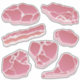 Jeu d'icônes de coupe de porc cru. Loin, filet, steak, t-bone, côtes, cutlet, bifteck, bande de bacon.