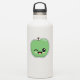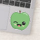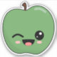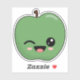 Une adorable pomme verte kawaii aux yeux noirs qui coule et un grand sourire heureux et des joues rouges roses.