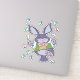 Une photo adorable d'un lapin dansant avec des oeufs colorés autour de lui, est présentée sur ces autocollants taillés sur mesure. Idéal pour la décoration, Pâques, la réservation de ferraille et plus encore!