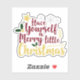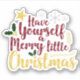 Ayez un Joyeux petit Noël dans une police de caractères cursive décorative en rouge profond et or. Embelli d'une étoile, de flocons de neige, de saints et d'une éraflure d'aiguilles à feuillage persistant.