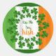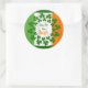 Embrasse-moi Je suis un autocollant irlandais avec des shamrocks pour la Saint Patrick’s Day. Le drapeau irlandais vert, blanc et orange est l'arrière - plan. Ajouter aux vêtements pour célébrer la fête irlandaise, ou utiliser dans un album ou un journal. Choisissez une taille et un texte de personnaliser si vous le souhaitez. L'expression est au centre avec des bordures rondes de trèfle vert. Les autocollants ronds et carrés sont disponibles en deux tailles. Cette conception n'est pas recommandée pour les autres formes.