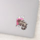 Un autocollant amusant de contour, avec un raton laveur avide avec un ventre plein, incliné contre les restes du gâteau d'anniversaire au chocolat qu'il a mangé. Un cadeau d'anniversaire ou de fête, ou quelque chose pour les fans d'animaux gais mais mignons. Inspiré par mon incapacité à laisser le gâteau tranquille, et aussi par un film comique avec un incident de raton laveur.