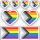 Stickers : Rainbow Flag & the "Progress" variation ajoute un chevron le long de l'arbre qui comporte des rayures noires, marron, bleu clair, roses et blanches pour amener ces communautés (les personnes marginalisées de couleur, les personnes trans, ceux qui vivent avec le VIH/SIDA et ceux qui ont été perdus) au premier plan ; "la flèche pointe vers la droite pour montrer le mouvement, tout en étant le bord gauche montre que des progrès doivent encore être faits.