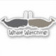 Beau autocollant pour observer les baleines. Deux adorables baleines caricaturales se faisant face, et les mots Whale Watching.