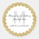 Un autocollant mariage blanc très élégant avec du texte de fantaisie noire. Un monogramme gris est au centre de l'autocollant mariage. Les noms des mariés et des mariés sont recouverts de noir avec leur date de mariage. Avec amour et grâce est écrit ci-dessous dans le même texte orné. Un cadre doré très soigné entoure ce design. Facile à customiser.