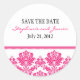 Autocollant de mariage monogramme Hot Pink damask qui peut être utilisé comme sceau d'invitation.