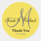 Stickers initiaux avec nom de mariée et mariée, date du mariage et un message de remerciement à l'express de votre gratitude le jour de votre mariage ou toute occasion spéciale. .Ce sticker mariage monogramme est en couleur jaune.Plus de couleurs sont disponibles pour votre choix. Vous pouvez également customiser la couleur et la police à l'aide du bouton de fonction personnaliser sous le produit