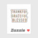 Cet autocollant simple mais significatif à base de texte comporte l'expression inspirante "Merci, Grateful, Blessed" dans la typographie élégante. Parfait pour célébrer la gratitude, la foi et l'esprit de la saison de Thanksgiving, cet art littéraire minimaliste est idéal pour les thèmes d'automne, les styles rustiques et l'esthétique moderne des fermes. Le design met l'accent sur la simplicité, la chaleur et la réflexion, ce qui est idéal pour quiconque aime les mots inspirants et les sentiments saisonniers.