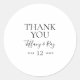 Cet autocollant de faveur de mariage simple et élégant est parfait pour votre mariage moderne minimaliste noir et blanc. Le design comporte une police contemporaine minimale accompagnée d'une calligraphie formelle. Gardez-le tel quel, ou choisissez de le personnaliser avec vos propres oeuvres d'art ou photos !