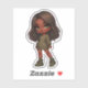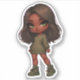 Sticker mignonne chibi fille en vert olive