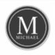 Un design élégant avec monogramme et nom dans le style de police serif professionnel blanc avec bordure blanche sur arrière - plan noir.