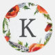 Un monogramme floral coloré, audacieux et élégant en rouge, oranges, verts et gris.