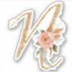 "Monogramme Initiale N Parties scintillant Or Peony Rose Floral Formé Stickers Transparent." Élégamment créé à partir de parties scintillant en or dimensionnel dans une écriture manuscrite, lettre "N" décorée de fleurs de pivoine rose poussiéreuse et pêche avec feuilles de tonalité de terre rouille, sauge muettée et feuillage vert de forêt. Art peint par Audrey Jeanne Roberts, artiste et designer de renommée internationale. Droit d'auteur .