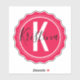 Autocollant personnalisé accrocheur avec votre unique initiale et nom sur un arrière - plan rose chaud.