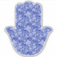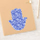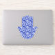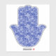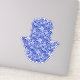 Main Hamsa bleu et blanc coloré. La main est imprimée d'un motif de style bohème délicat.