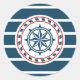 Design nautique avec décoration de boussole en forme ronde sur bleu et blanc rayé arrière - plan