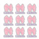 Un arc rose est au-dessus du texte royal violet. Vous pouvez modifier le texte pour afficher le nom d'une fille. Il y a neuf arcs avec des noms. Ces autocollants seraient parfaits pour l'étiquetage des articles scolaires.