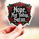 Envoyez un message clair avec cet autocollant Nope Not Today Satan avec des lettres gothiques et des roses rouges audacieuses. Parfait pour les ordinateurs portables, les tumeurs, les journaux ou même votre miroir pour un rappel quotidien de rester fort. Imprimé sur un vinyle durable avec une finition nette et vibrante qui dure. Un autocollant amusant basé sur la foi avec l'attitude — idéal pour donner à des amis ou garder pour vous-même. Reste féroce, reste fidèle.