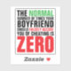 This sticker advocates for victims of domestic violence. It has the following quote on it: 'The normal number of times your boyfriend should falsely accuse you of cheating is zero.' It reminds people that a healthy relationship is based on trust and calm, logical communication. This item can be used as a car sticker, or for public tagging to educate and inform people. It can also be given as a favor at talks and seminars. ⚠ For more health stickers, visit my store: Zazzle.com/Elder_Vitality ⚠ For custom orders, message me on Zazzle