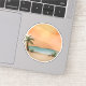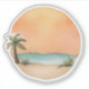 Cette paisible aquarelle présente un coucher de soleil doré qui projette son doux éclat sur un bord de plage serein. Le rivage sablonneux, accentué par un gracieux palmier et une végétation luxuriante, crée une escapade tropicale tranquille. Avec ses tons de terre et ses gradients doux, cette pièce est parfaite pour apporter une touche de tropique aux salons, chambres ou bureaux. Son design circulaire et son esthétique minimaliste le rendent polyvalent pour l'art mural, les imprimés encadrés ou les autocollants.