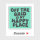 Escape the noise and show off your love for the simple life with this "Off the Grid is My Happy Place" sticker. Perfect for adventurers, nature lovers, and anyone who finds peace in unplugging. Whether you're decking out your water bottle, laptop, camper, or journal, this sticker adds a touch of wilderness-inspired joy wherever you stick it