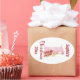 1er Stickers Ovaux de Noël pour une petite fille avec un lapin d'hiver mignon et grand rose numéro un. Personnalisez facilement le texte. - Kate Eden Art