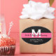 Ce étiquette de adresse monogramme moderne rose et noir ovale fait une déclaration!
