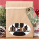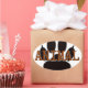 Une patte d'animal noir et des empreintes de griffe avec du texte brun. Design original.