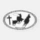 Conception Roping d'équipe avec la frontière de croix et de corde, Ridin pour le Christ - adhésif pour pare-chocs européen d'ovale de style.