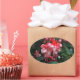 Sticker Ovale Fleurs fuchsia rouge & blanc en fleurs dans le jar